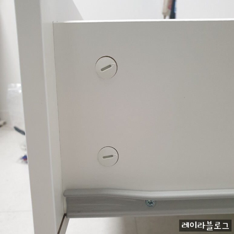 주의할 점은 서랍을 만들고 일자드라이버로 돌려서 고정해야하는데 (사진 좌측) 이걸 꼭 끝까지 잘 돌려야한다.