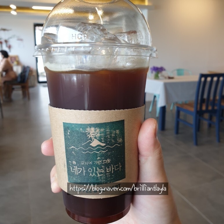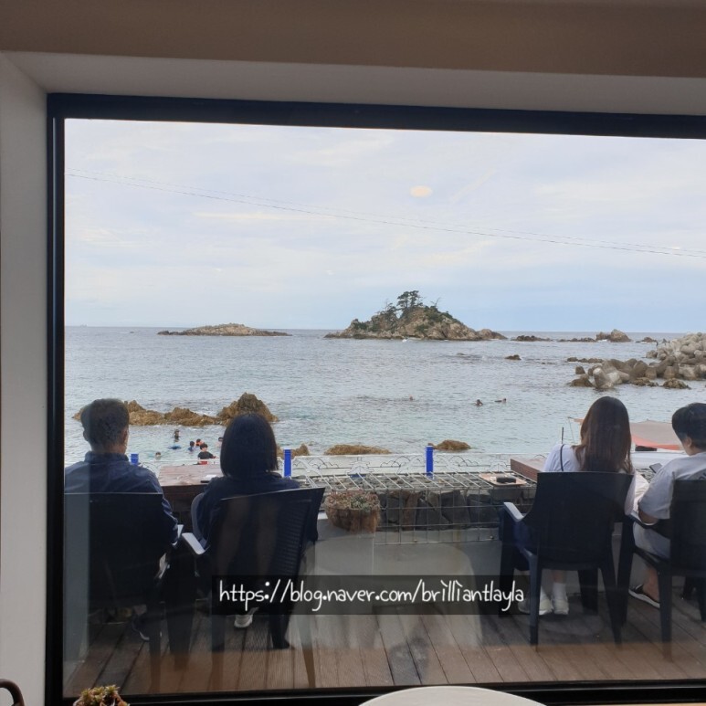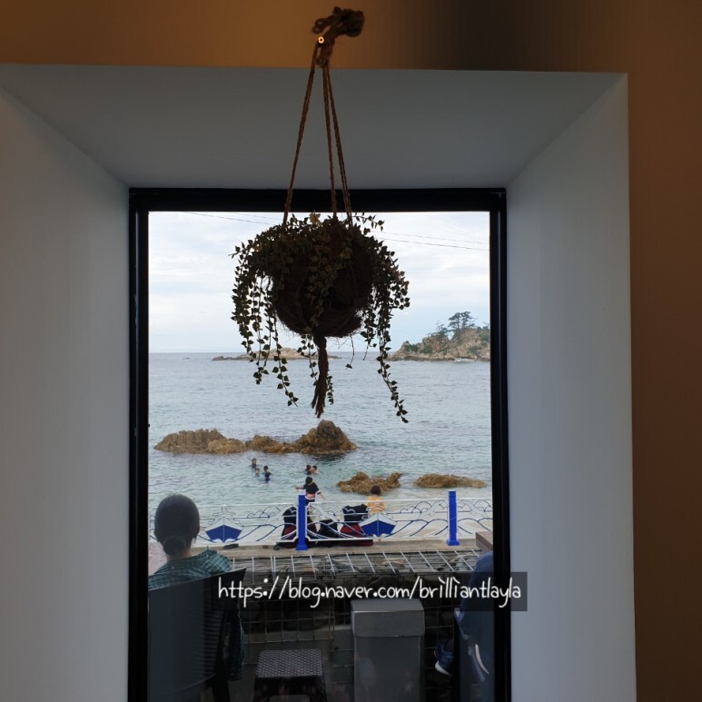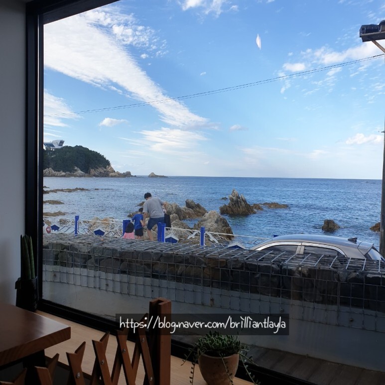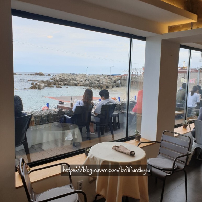 그래서 우린 바다가 보이는 실내석에 앉았다.